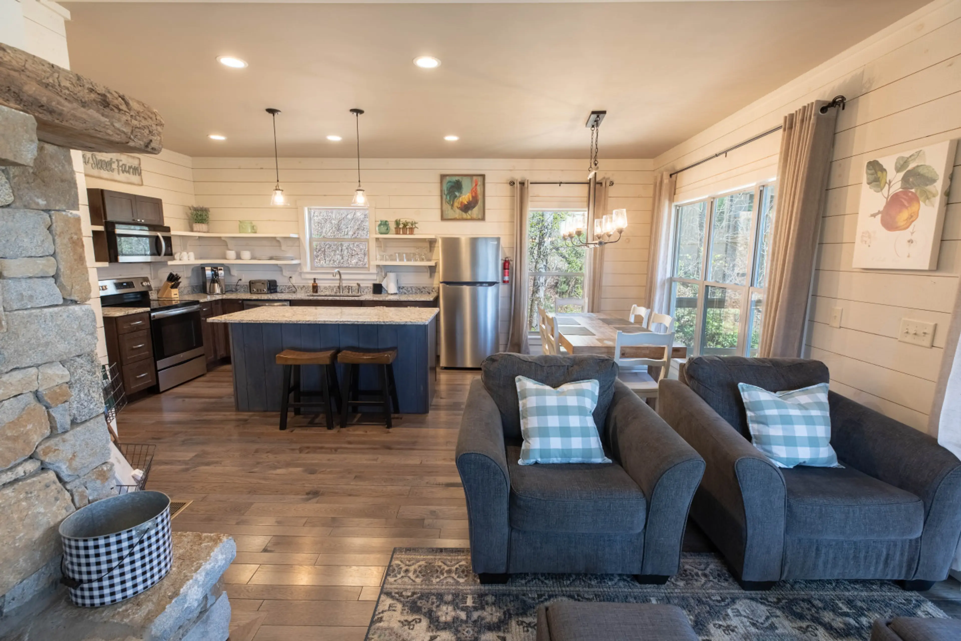 "Cider Sweet" cottage is one of three vacation rentals on Five Apple Farm. This newly constructed cottage offers mountain chic comfort, in a family farm setting. Snuggle up next to a cozy fireplace and enjoy quality time and home-cooked meals in the well-appointed kitchen. Adventure during the day ...